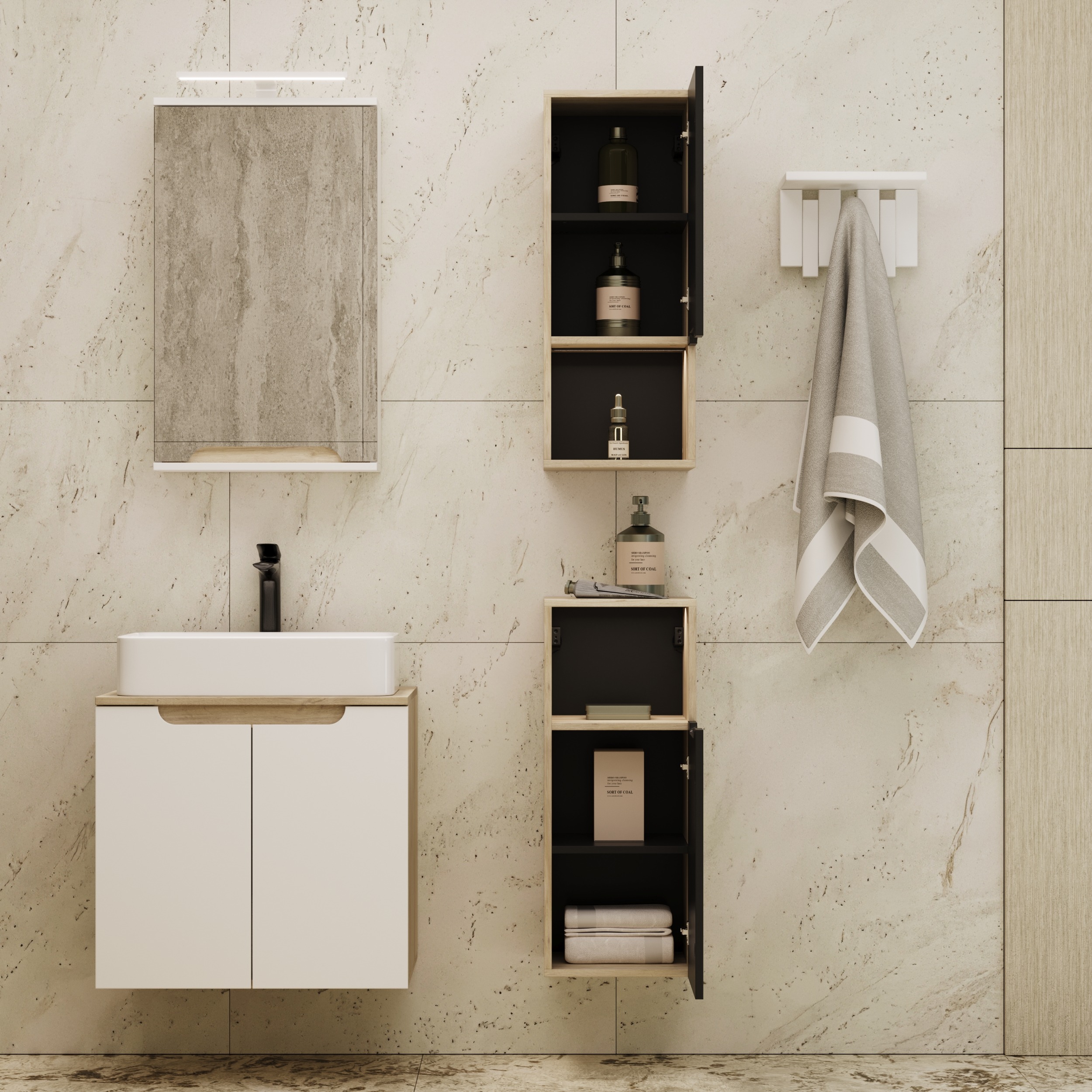 Szafka boczna serii KITTY jest nie tylko funkcjonalna, ale także stylowa, dzięki czemu jest doskonałym dodatkiem do każdego wystroju łazienki. Elegancki i nowoczesny design szafki idealnie komponuje się z każdym motywem łazienki, zarówno nowoczesnym, jak i tradycyjnym. Szafka łazienkowa boczna z drzwiami i półką zapewnia dużo miejsca do przechowywania przyborów toaletowych, środków czyszczących, akcesoriów łazienkowych, ręczników itp.