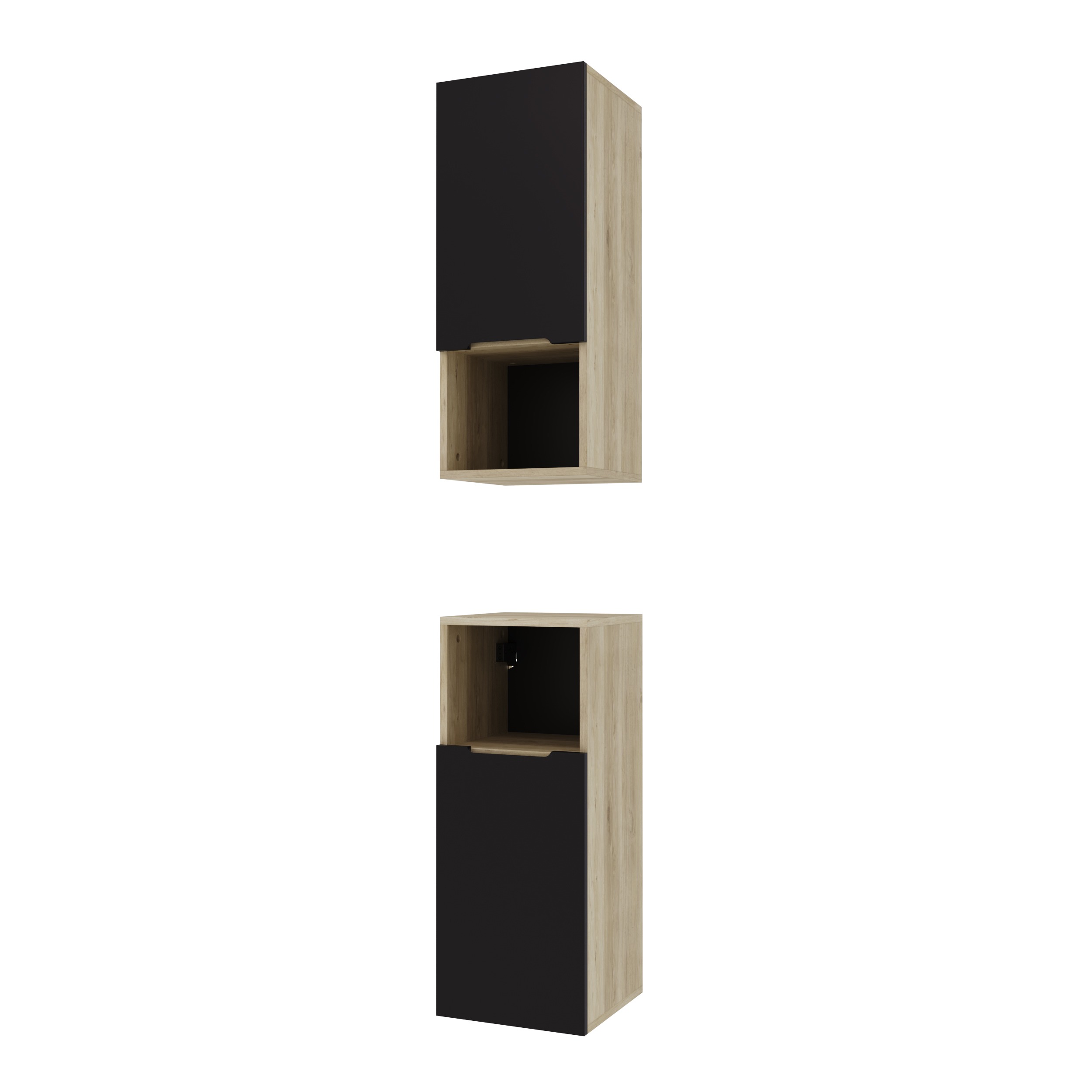 Korpus szafki wykonany w kolorze Dąb Słoneczny, fronty szafki wykonane z wysokiej jakości płyty MDF malowanej na głęboki mat. Kolor lakierowanych frontów czarny szary albo biały znajdziecie państwo na innych naszych aukcjach.