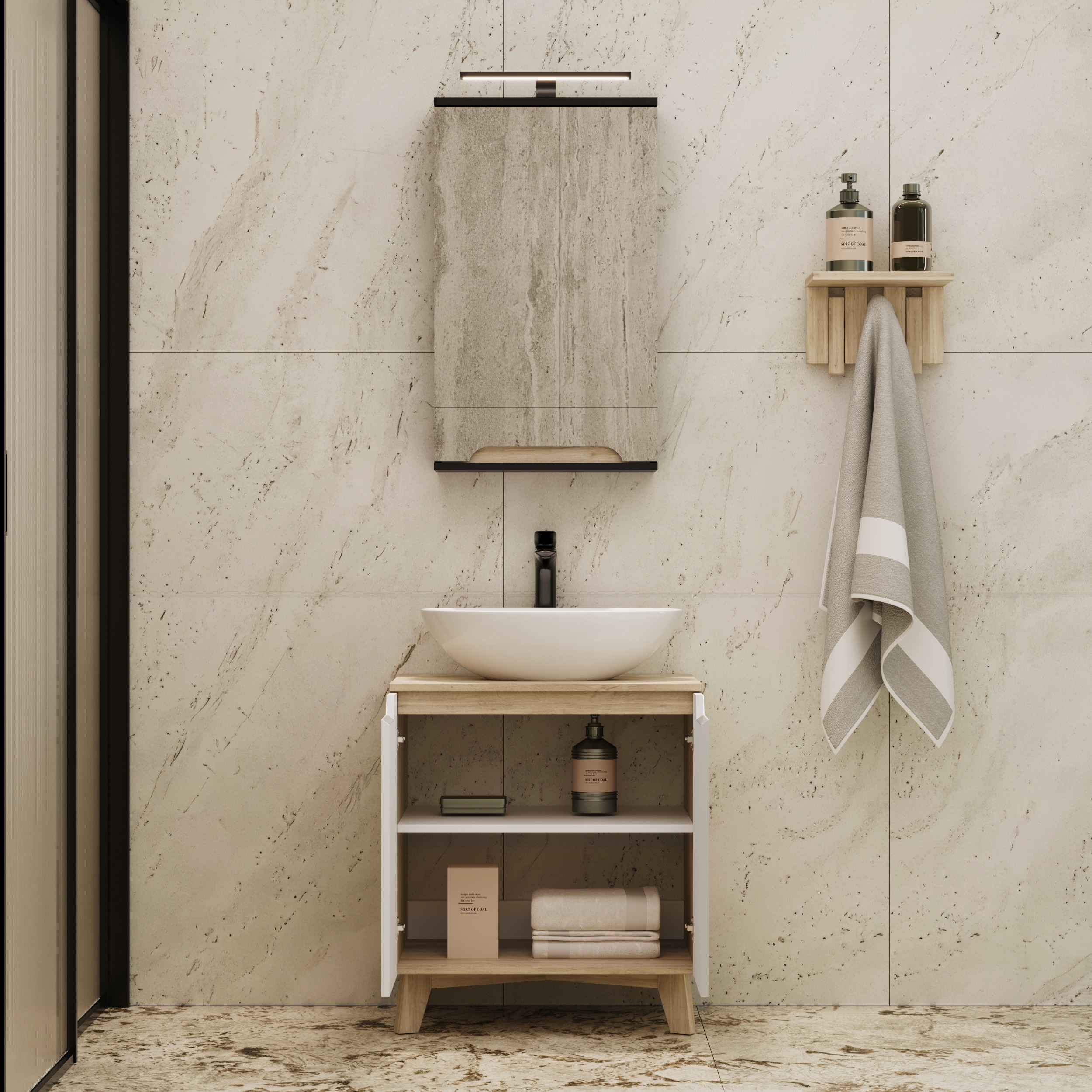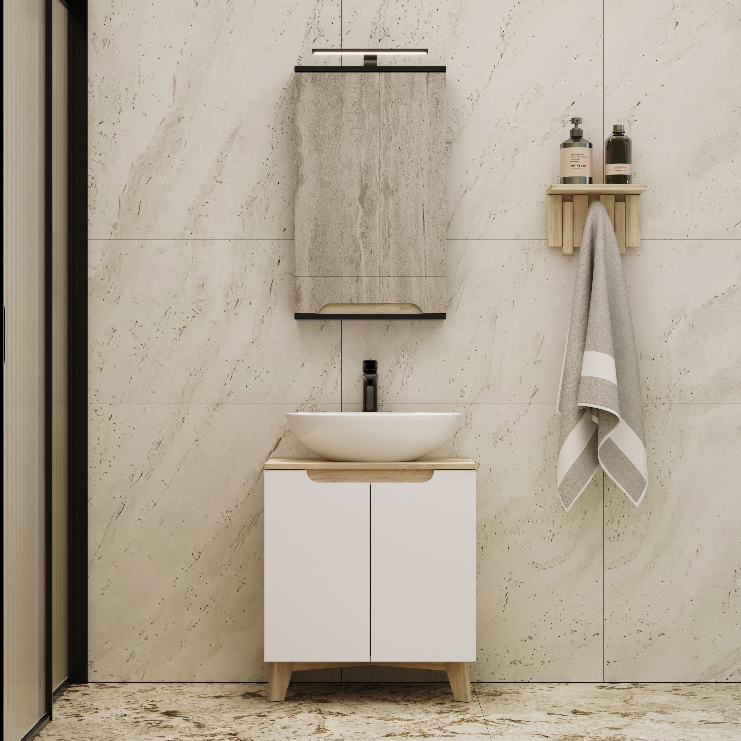 Szafka pod umywalkę serii KITTY jest nie tylko funkcjonalna, ale także stylowa, dzięki czemu jest doskonałym dodatkiem do każdego wystroju łazienki. Jego elegancki i nowoczesny design idealnie komponuje się z każdym motywem łazienki, zarówno nowoczesnym, jak i tradycyjnym. Szafka łazienkowa z 2 drzwiami zapewnia dużo miejsca do przechowywania przyborów toaletowych, środków czyszczących, akcesoriów łazienkowych, ręczników itp.