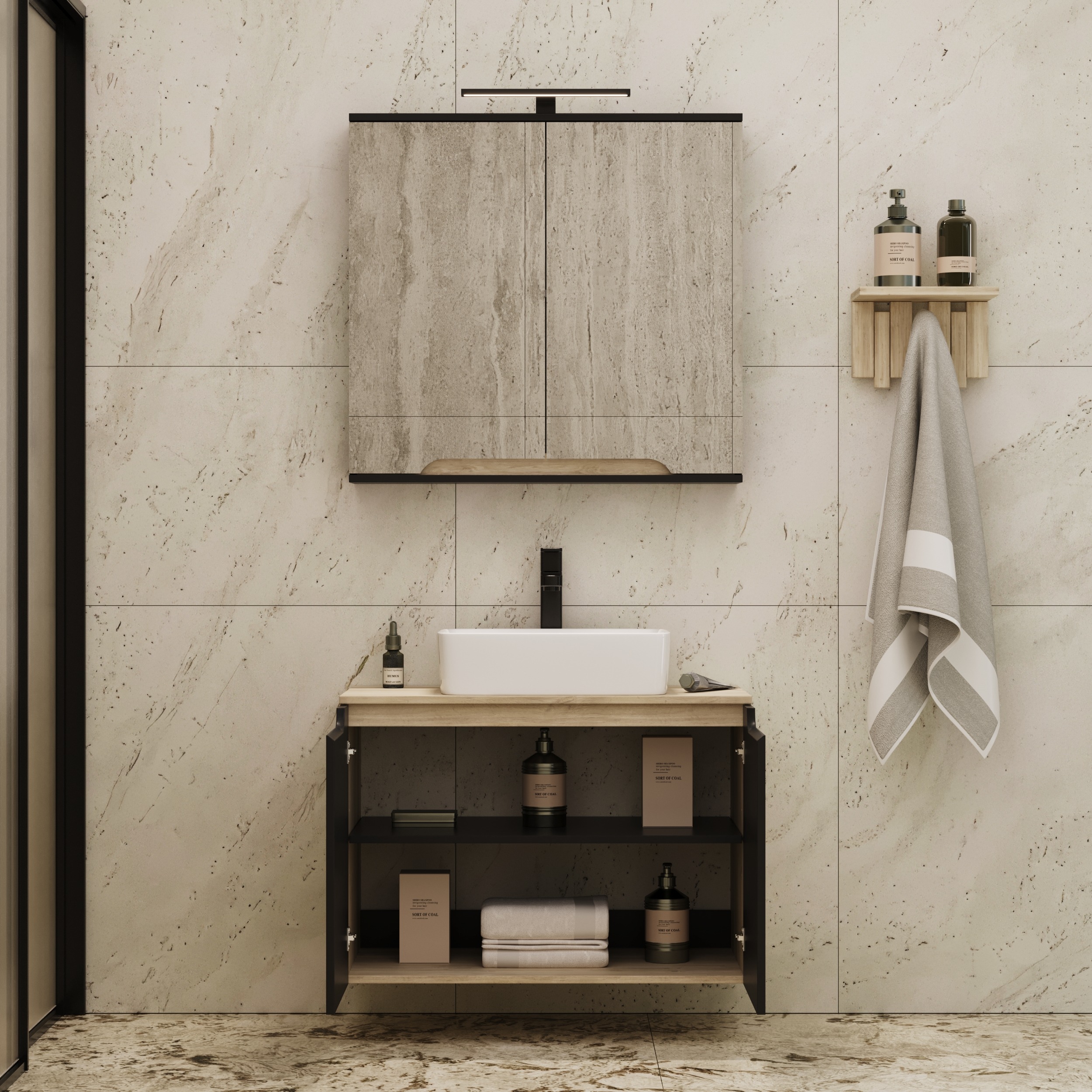 Szafka pod umywalkę serii KITTY jest nie tylko funkcjonalna, ale także stylowa, dzięki czemu jest doskonałym dodatkiem do każdego wystroju łazienki. Jego elegancki i nowoczesny design idealnie komponuje się z każdym motywem łazienki, zarówno nowoczesnym, jak i tradycyjnym. Szafka łazienkowa z 2 drzwiami zapewnia dużo miejsca do przechowywania przyborów toaletowych, środków czyszczących, akcesoriów łazienkowych, ręczników itp.