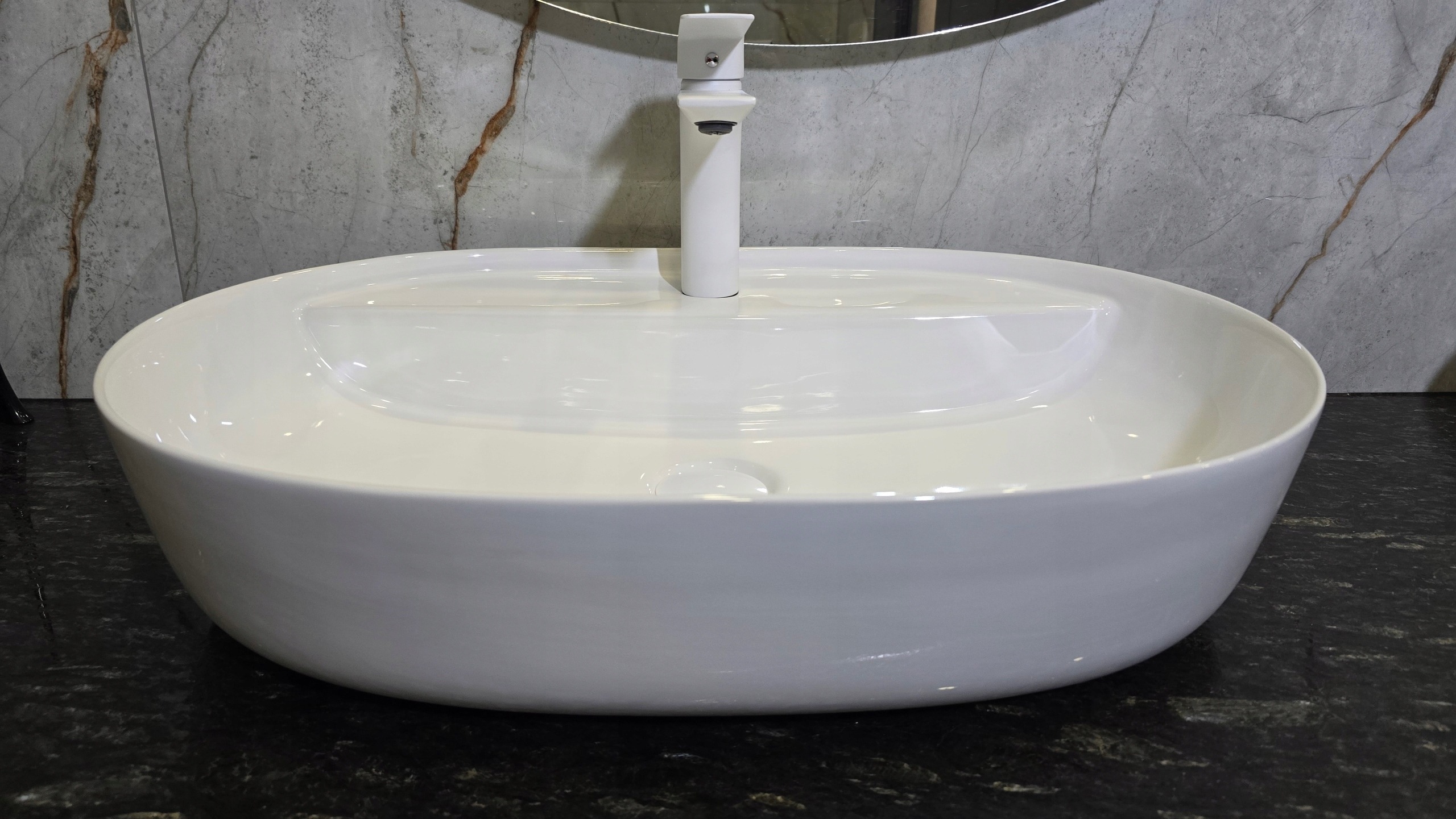 Napisz pierwszą opinię o „Umywalka nablatowa 60x40x13 biała owalna zaokrąglona ceramiczna Omeble”