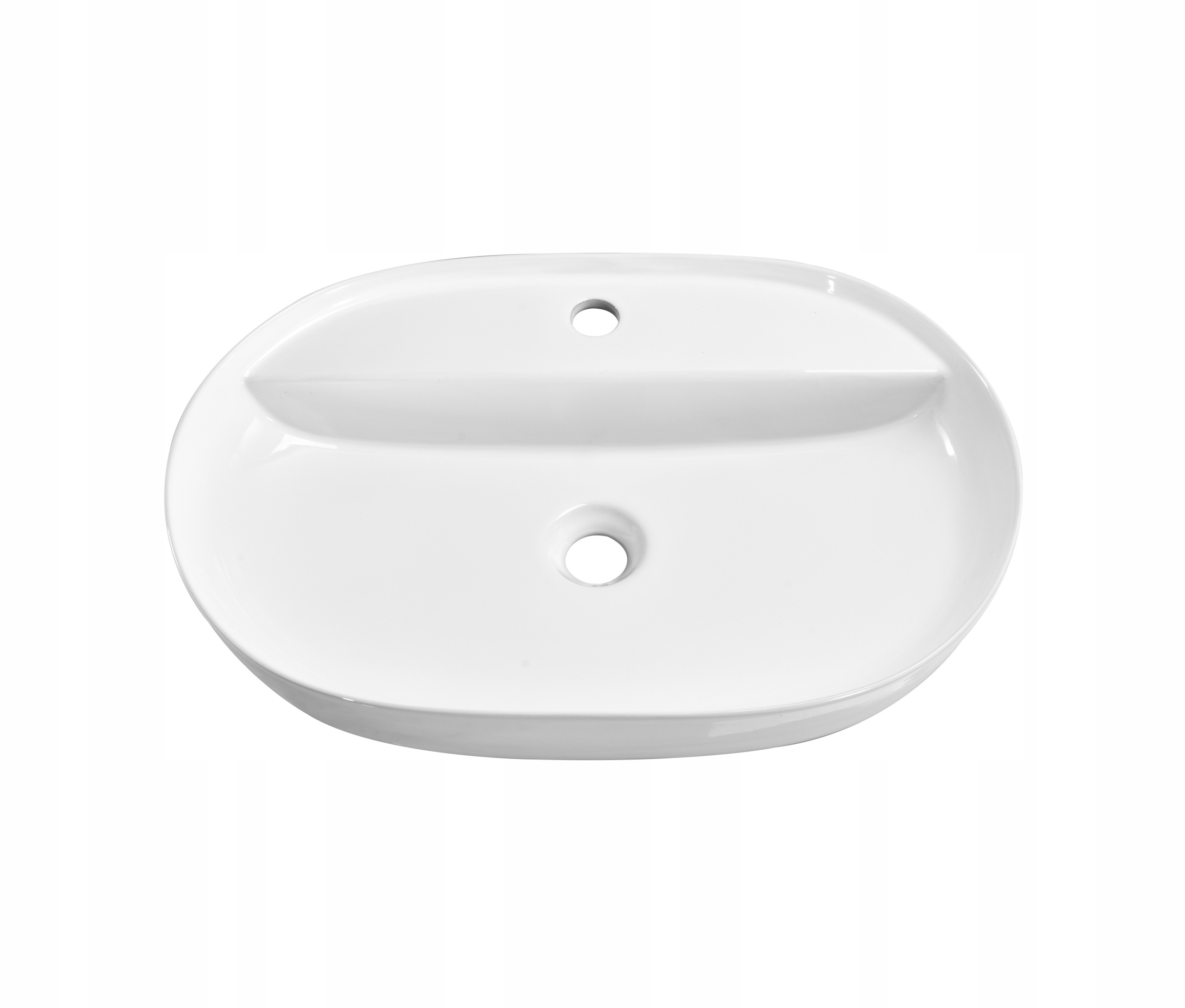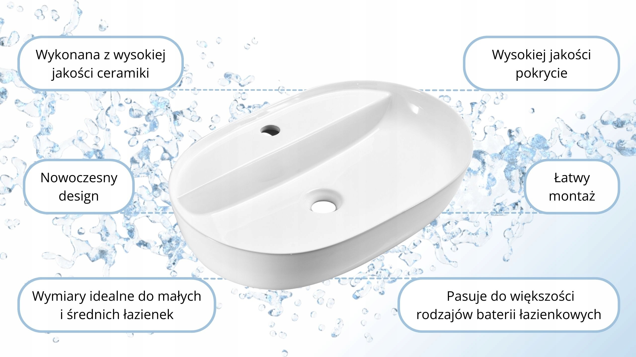Umywalka nablatowa 60x40x13 biała owalna zaokrąglona ceramiczna Omeble